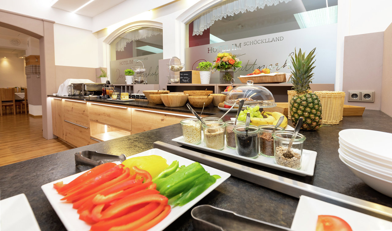 ... und das im wahrsten Sinne des Wortes. Bei uns genießen Sie nämlich echte Schätze aus der Region! Zum Beispiel das knackfrische, herrlich duftende Brot und Gebäck von der Bäckerei Pfleger, die wunderbare Milch vom Bauernhof Möstl, den goldenen Honig der Semriacher Bienen und vieles, vieles mehr! Für einen echten Energiekick sorgen außerdem die frischen Säfte aus unserer Obst- und Gemüsesaftpresse. Mhhhh kann Frühstück schöner sein?